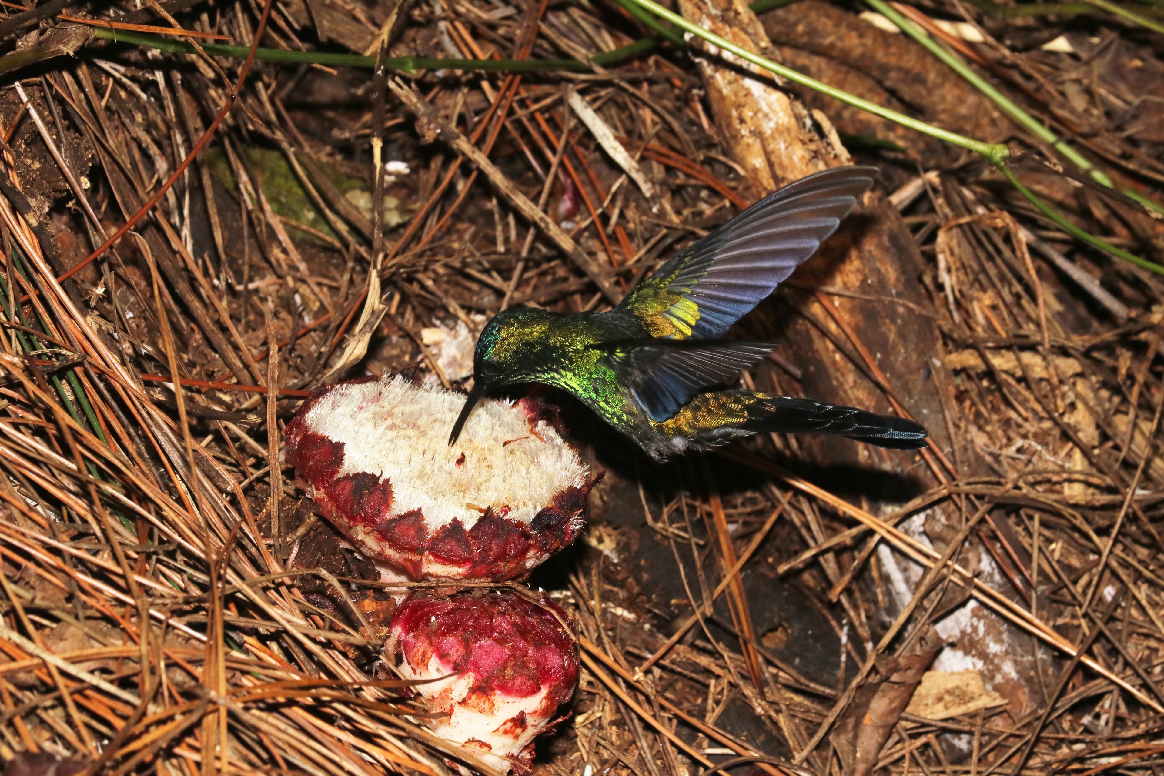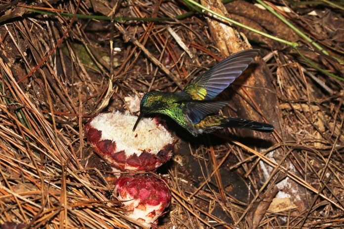 Cercada por uma camada de brácteas avermelhadas (folhas modificadas que protegem a inflorescência da planta), a Scybalium fungiforme é uma espécie parasita de raiz de outras plantas, encontrada principalmente nas Florestas Estacionais do Estado de São Paulo. Devido à sua estrutura reforçada e localização rente ao solo, era difícil imaginar que uma planta como essa pudesse ser polinizada por insetos ou aves.